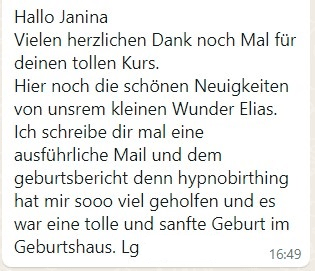 Herzlichen Dank Janina für die tolle Zeit mit dir und Hypnobirthing.